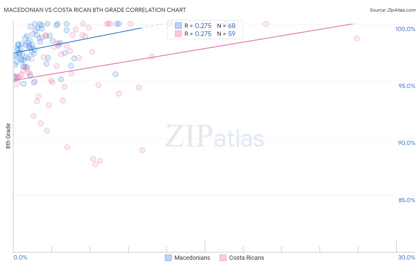 Macedonian vs Costa Rican 8th Grade Correlation Chart