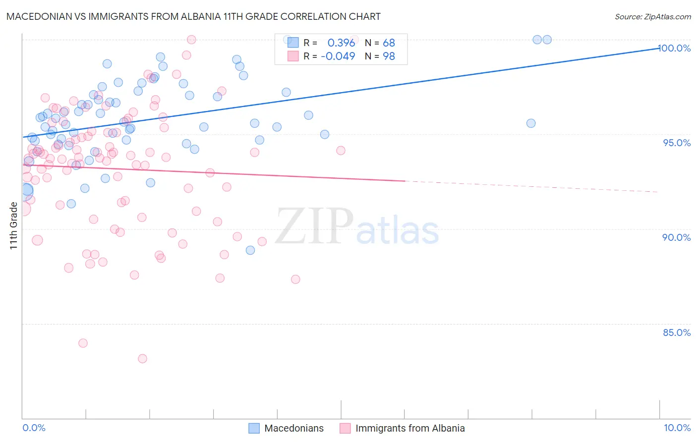 Macedonian vs Immigrants from Albania 11th Grade Correlation Chart