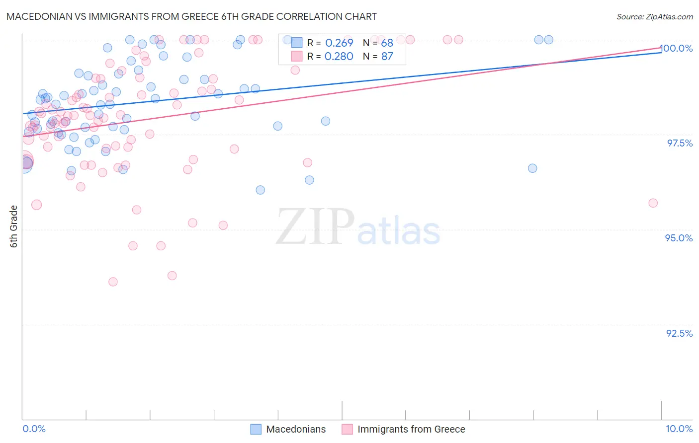Macedonian vs Immigrants from Greece 6th Grade Correlation Chart