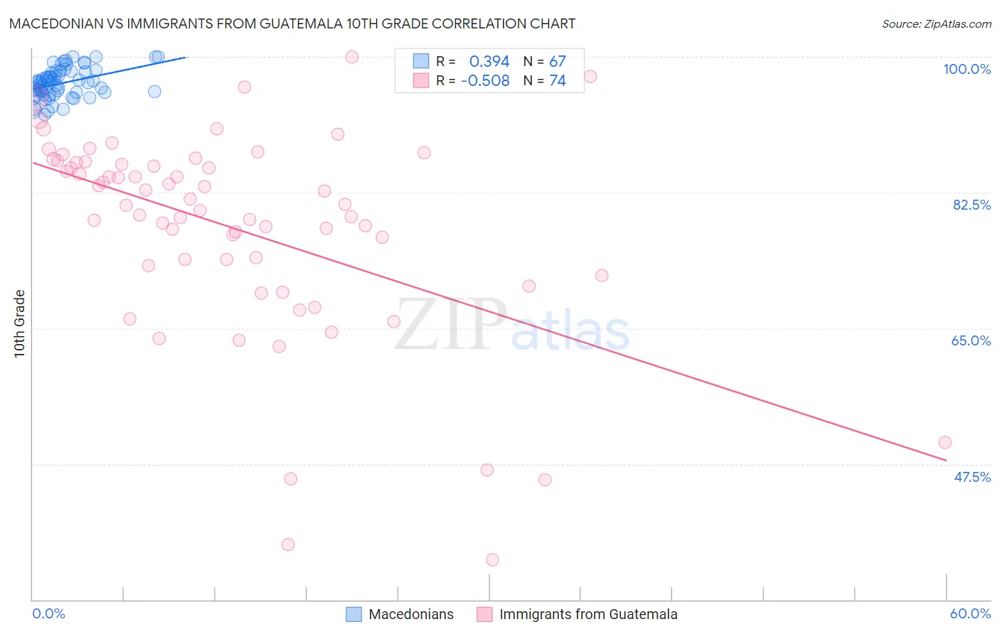 Macedonian vs Immigrants from Guatemala 10th Grade Correlation Chart