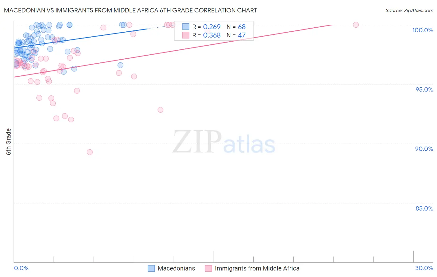 Macedonian vs Immigrants from Middle Africa 6th Grade Correlation Chart