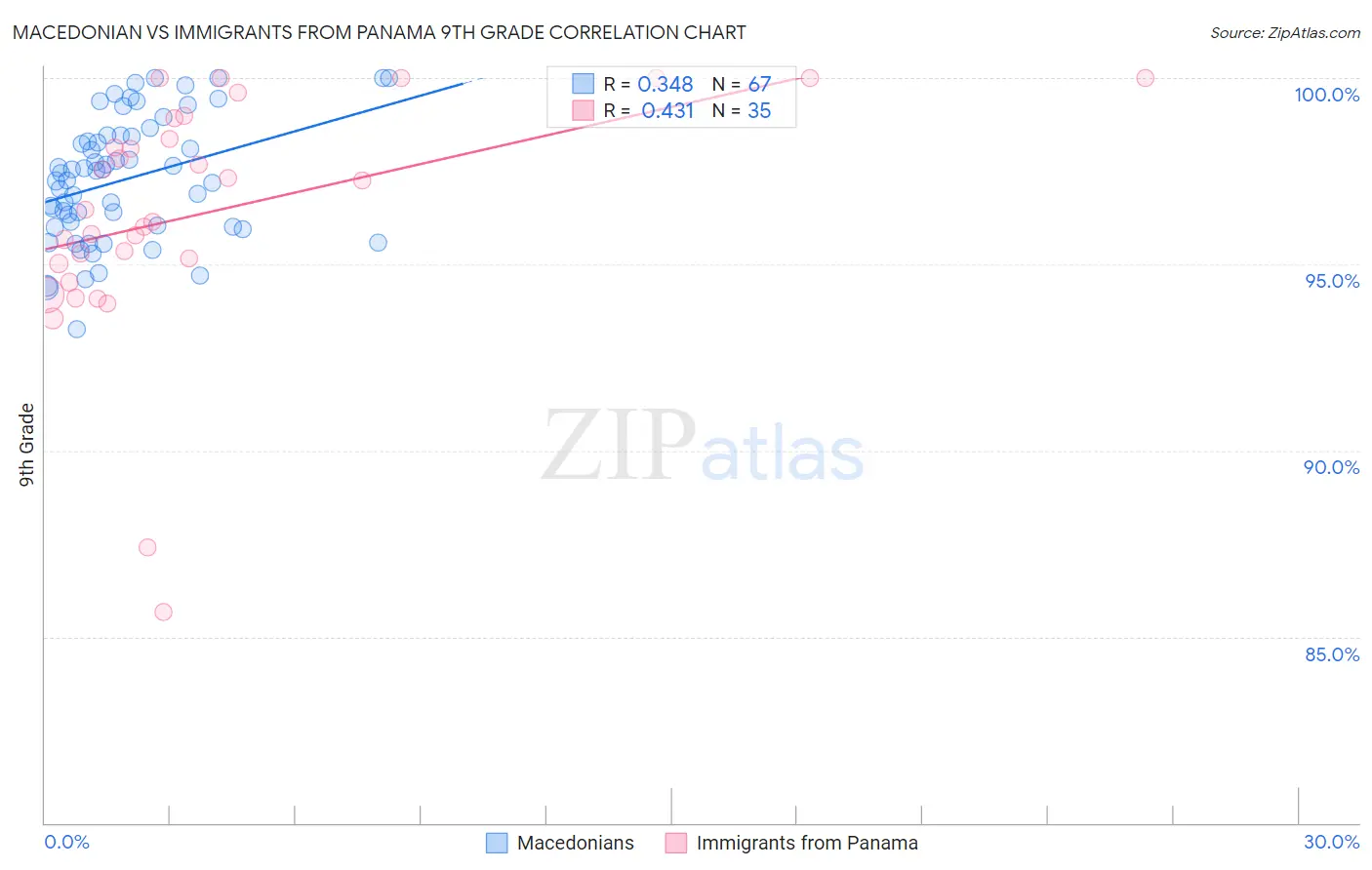 Macedonian vs Immigrants from Panama 9th Grade Correlation Chart