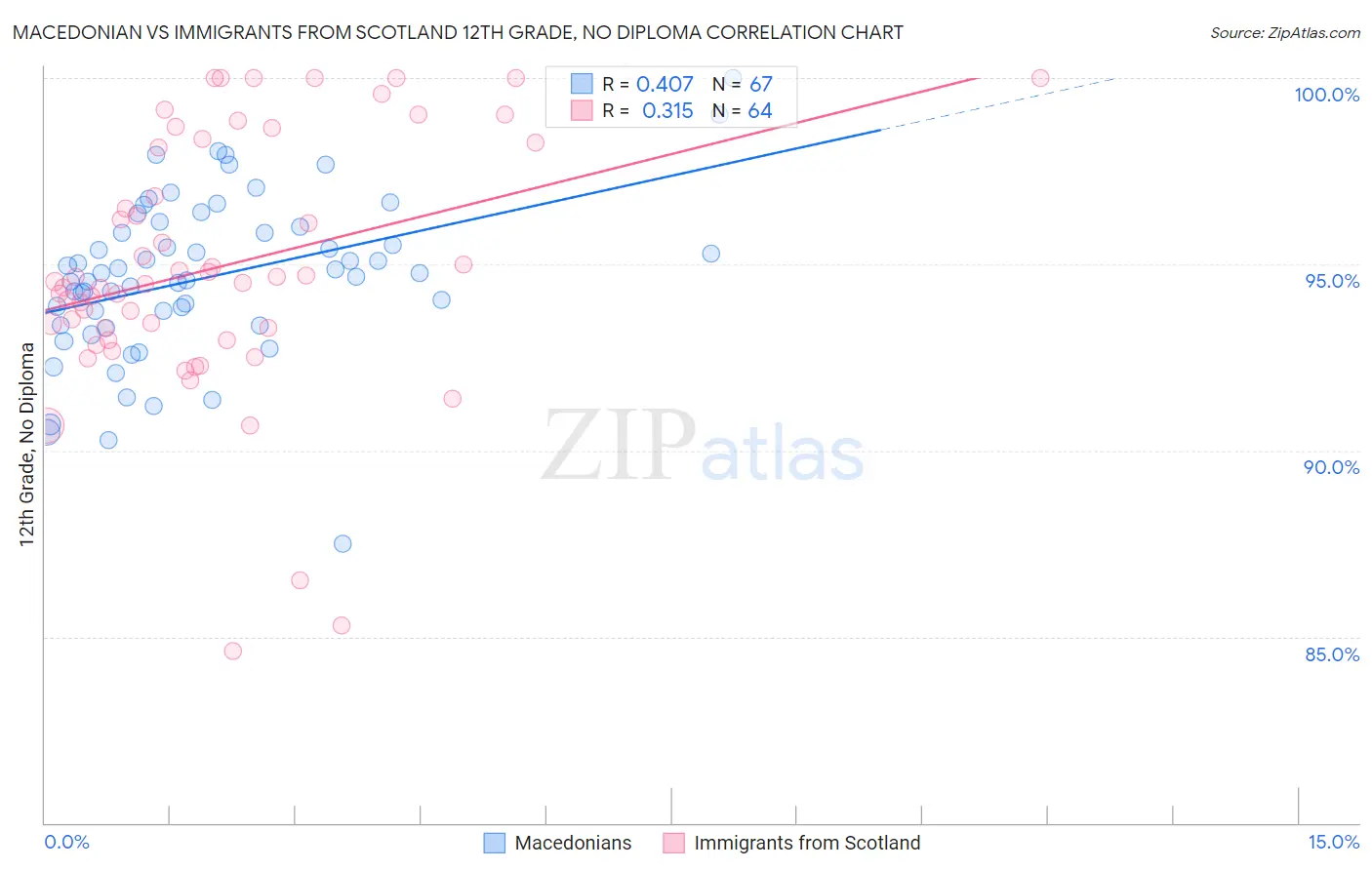 Macedonian vs Immigrants from Scotland 12th Grade, No Diploma Correlation Chart