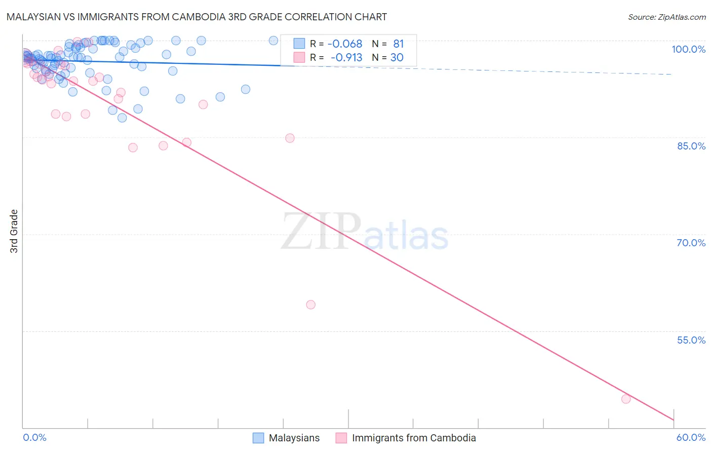 Malaysian vs Immigrants from Cambodia 3rd Grade Correlation Chart