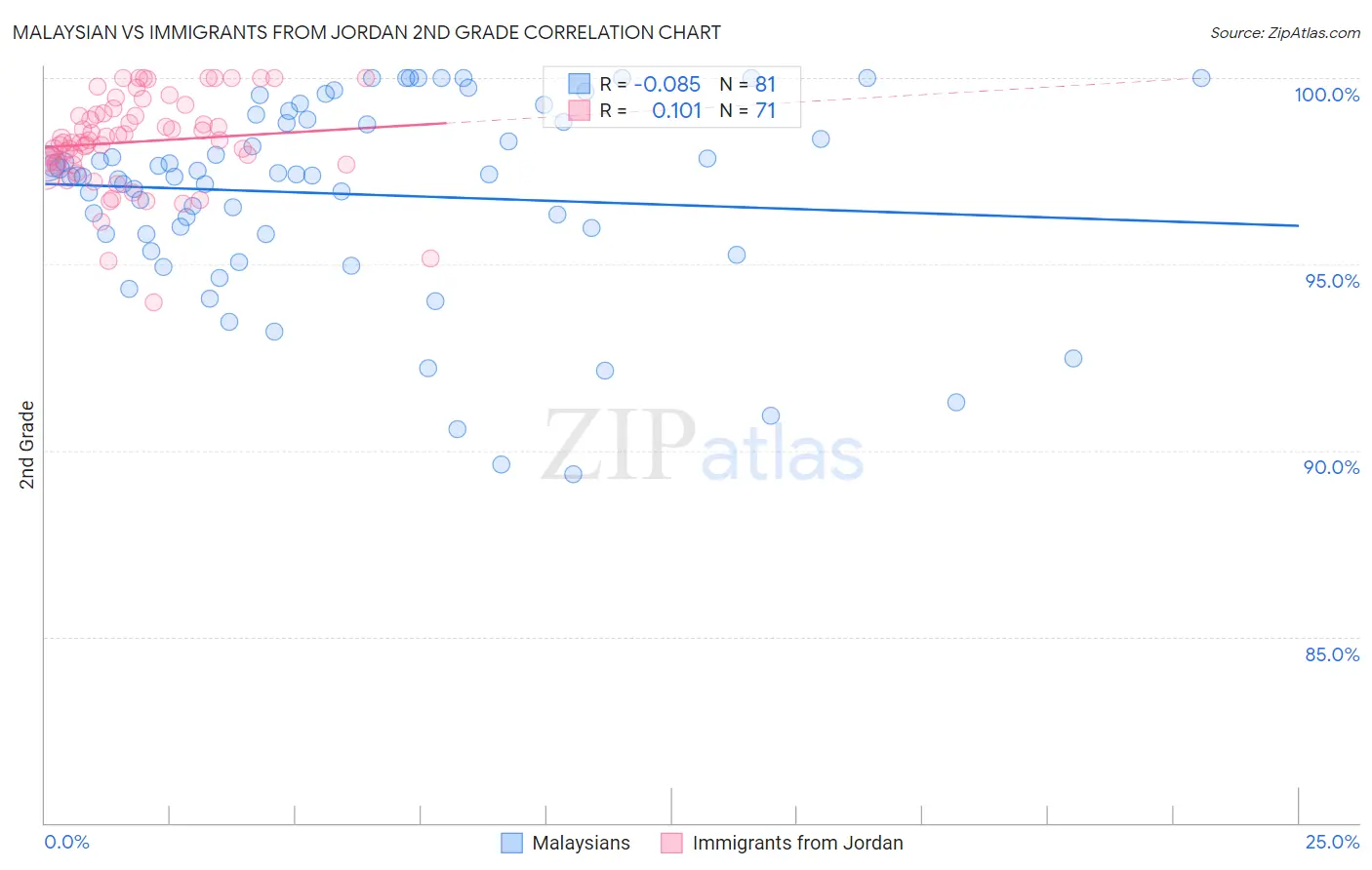 Malaysian vs Immigrants from Jordan 2nd Grade Correlation Chart