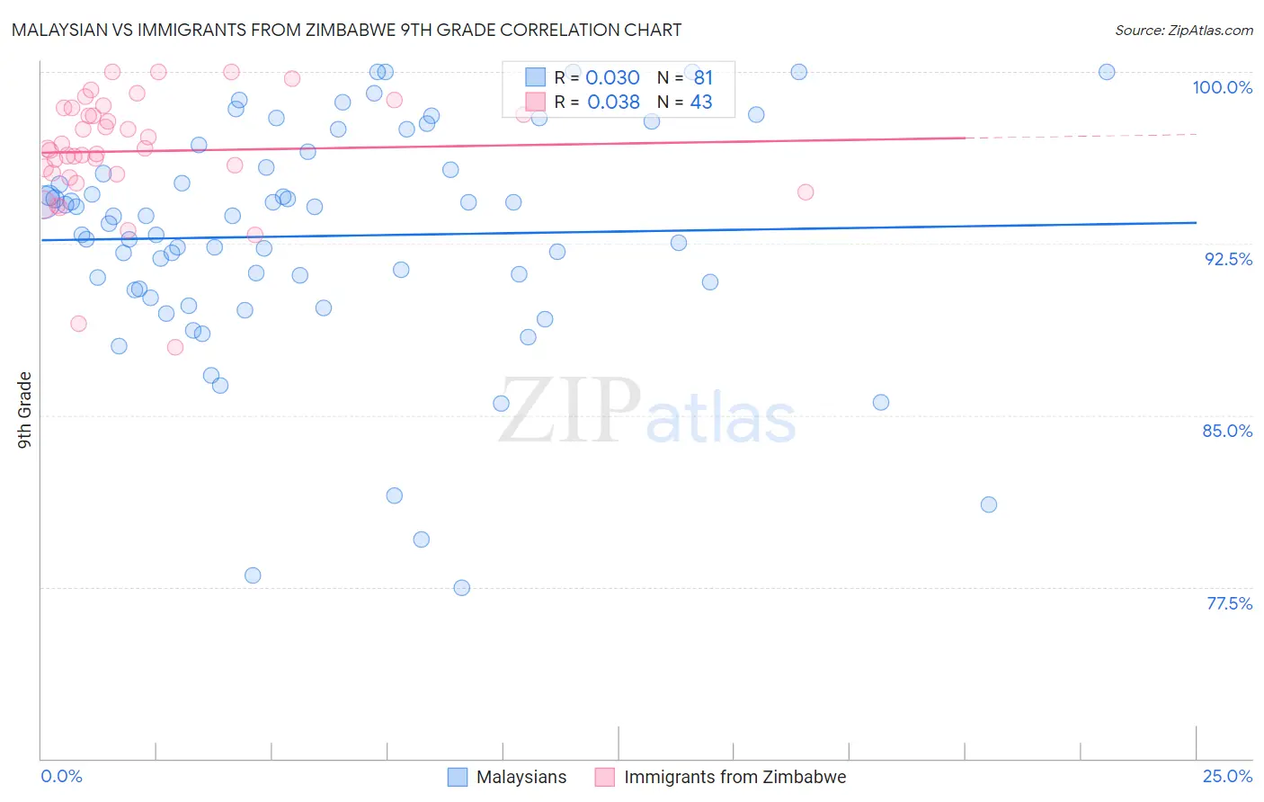 Malaysian vs Immigrants from Zimbabwe 9th Grade Correlation Chart