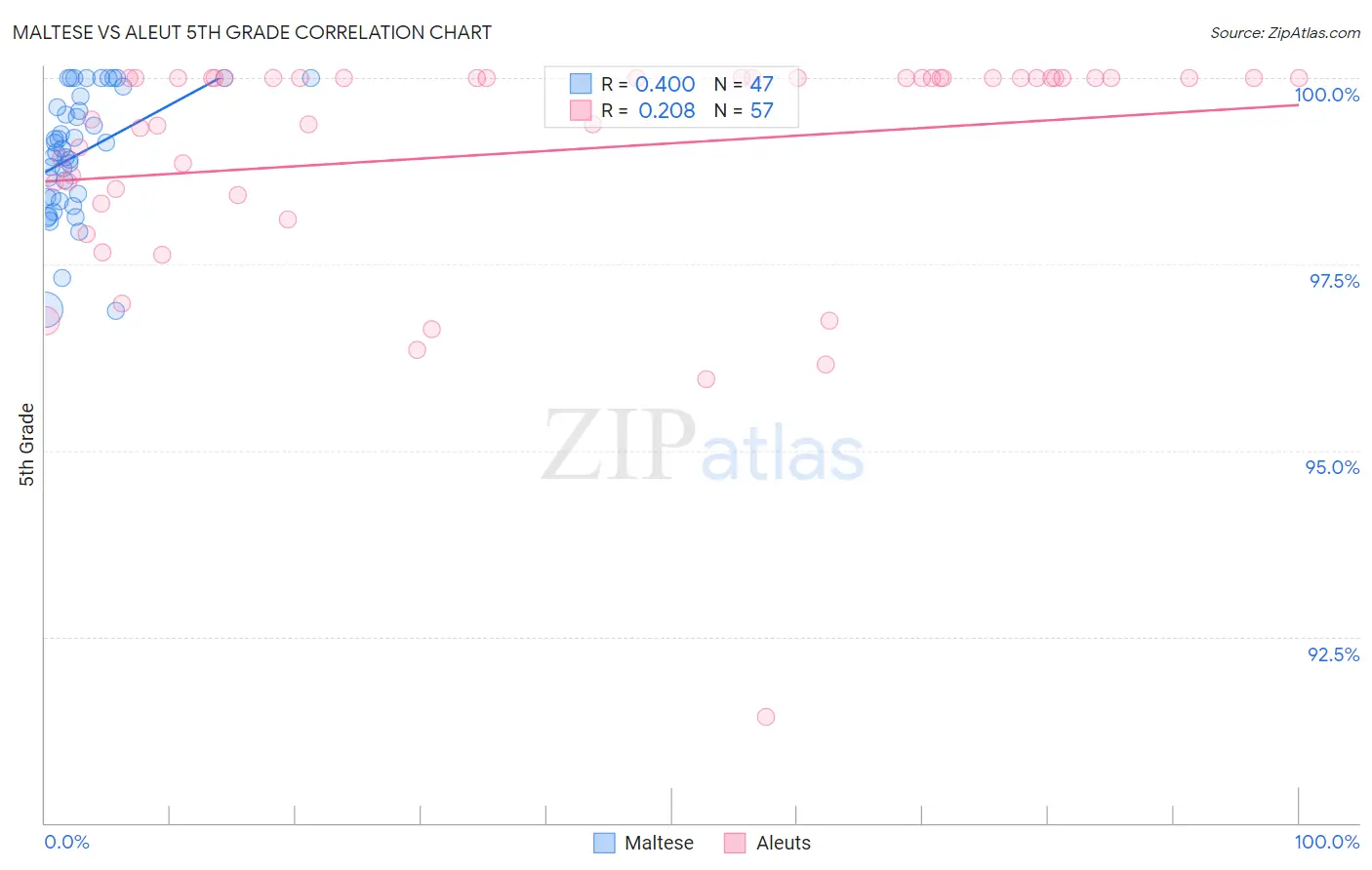 In terms of 5th grade, the demographic groups most similar to Maltese are Slavic (98.0%, a difference of 0.0%), Estonian (98.0%, a difference of 0.010%), Immigrants from Scotland (98.0%, a difference of 0.010%), Celtic (98.0%, a difference of 0.010%), and Australian (98.0%, a difference of 0.010%). Similarly, the demographic groups most similar to Aleuts are Ottawa (98.0%, a difference of 0.010%), Czechoslovakian (98.0%, a difference of 0.010%), Arapaho (98.0%, a difference of 0.010%), Northern European (98.0%, a difference of 0.020%), and Native Hawaiian (98.0%, a difference of 0.020%).