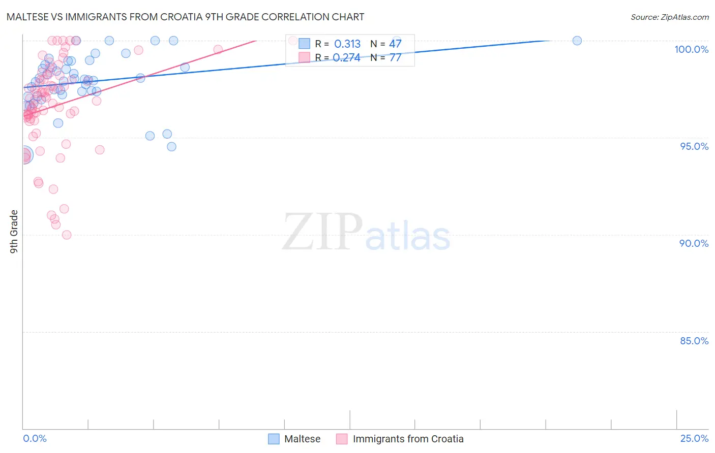 Maltese vs Immigrants from Croatia 9th Grade Correlation Chart
