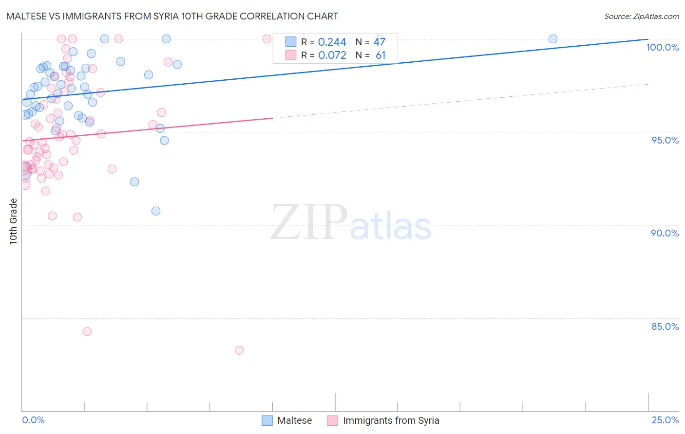 Maltese vs Immigrants from Syria 10th Grade Correlation Chart
