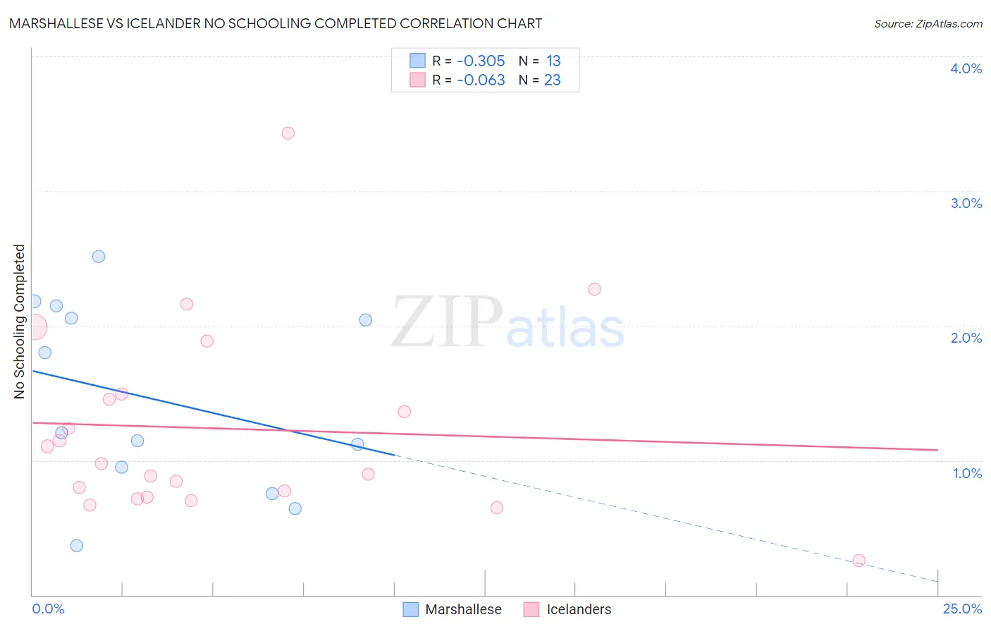 Marshallese vs Icelander No Schooling Completed Correlation Chart