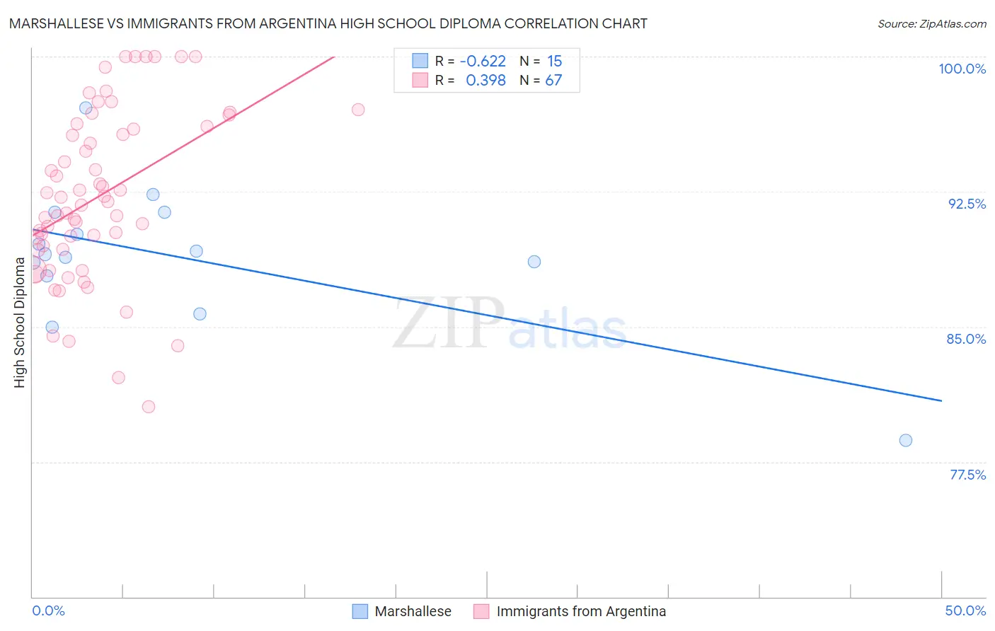 Marshallese vs Immigrants from Argentina High School Diploma Correlation Chart