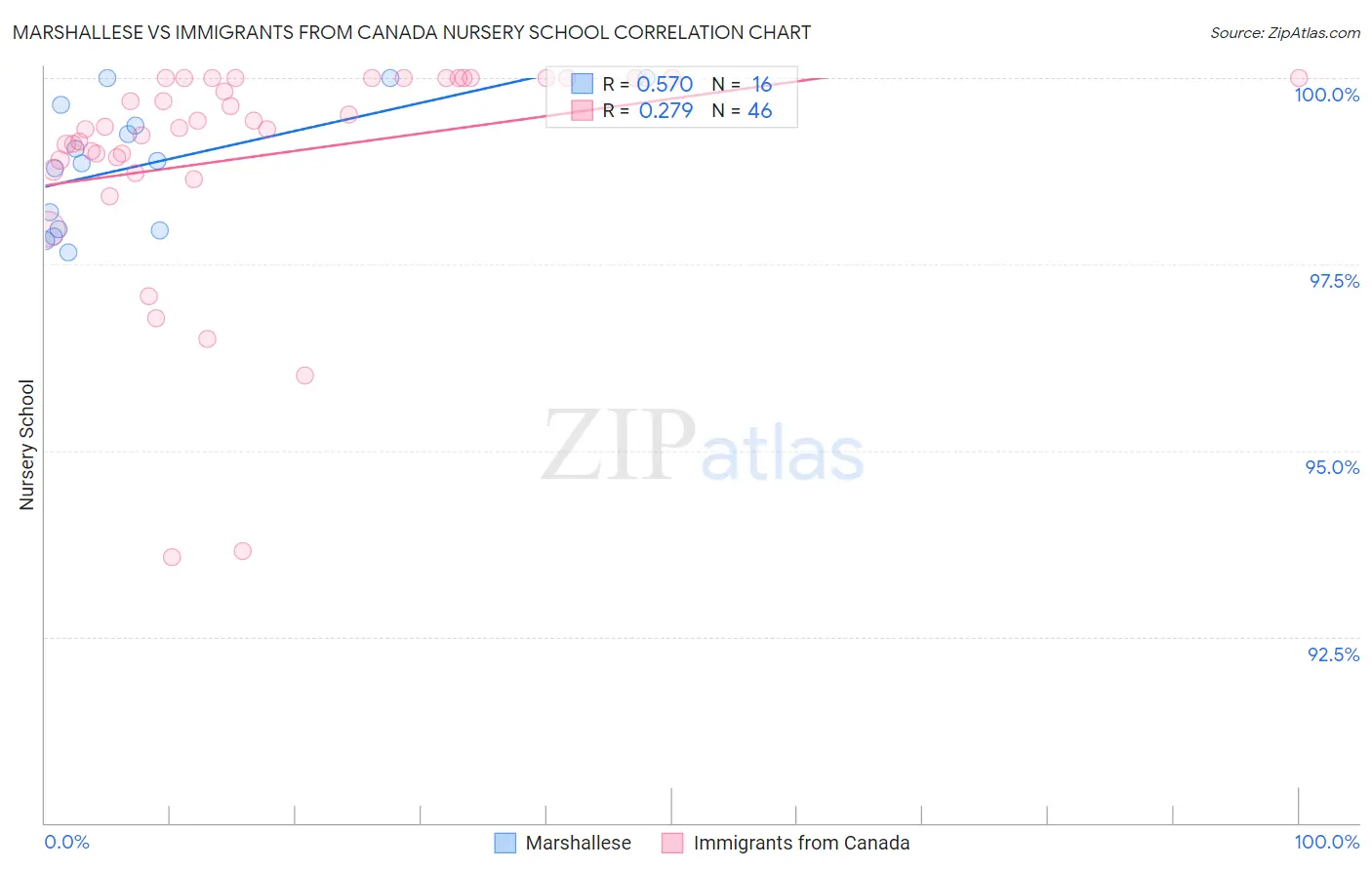 Marshallese vs Immigrants from Canada Nursery School Correlation Chart