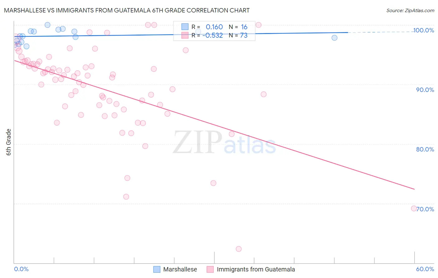 Marshallese vs Immigrants from Guatemala 6th Grade Correlation Chart
