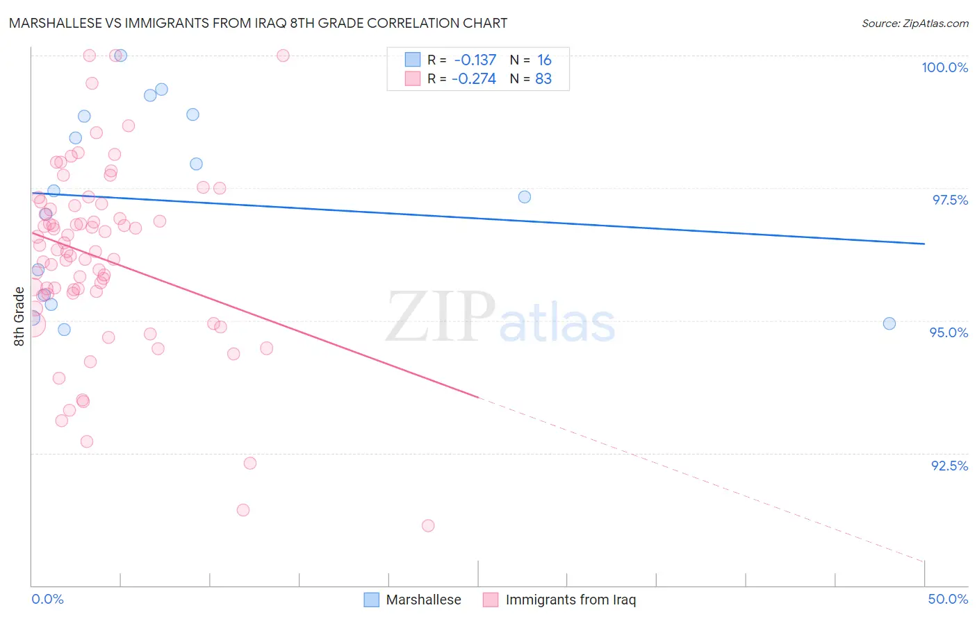 Marshallese vs Immigrants from Iraq 8th Grade Correlation Chart