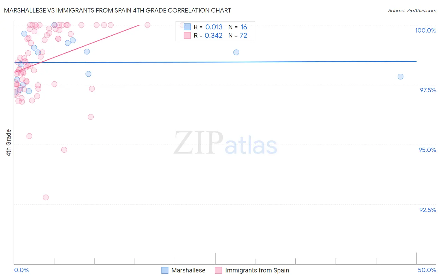 Marshallese vs Immigrants from Spain 4th Grade Correlation Chart