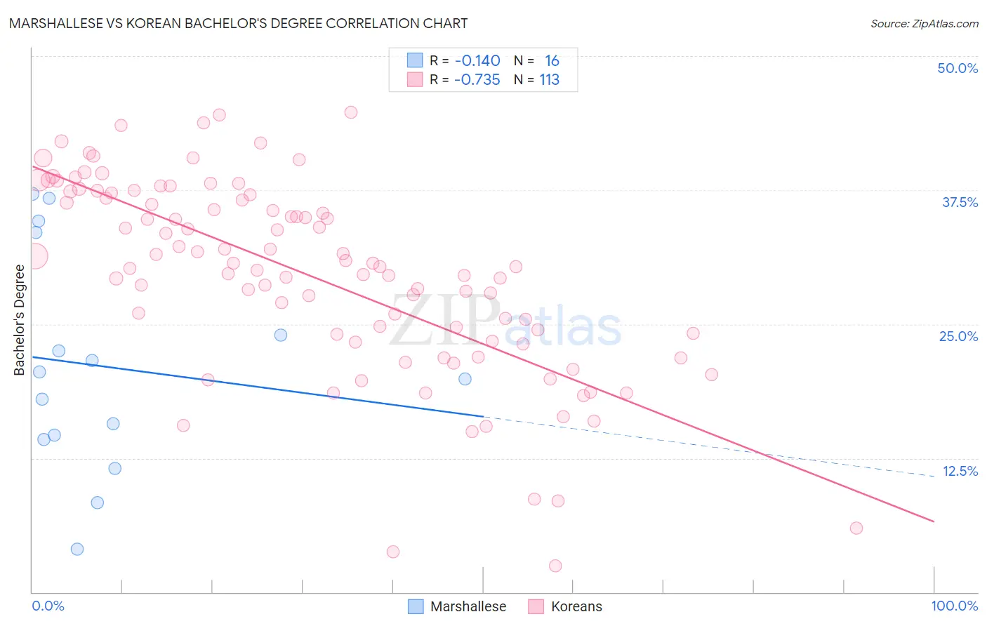 Marshallese vs Korean Bachelor's Degree Correlation Chart