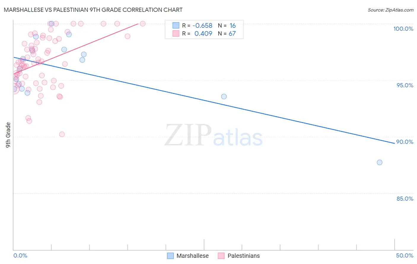 Marshallese vs Palestinian 9th Grade Correlation Chart