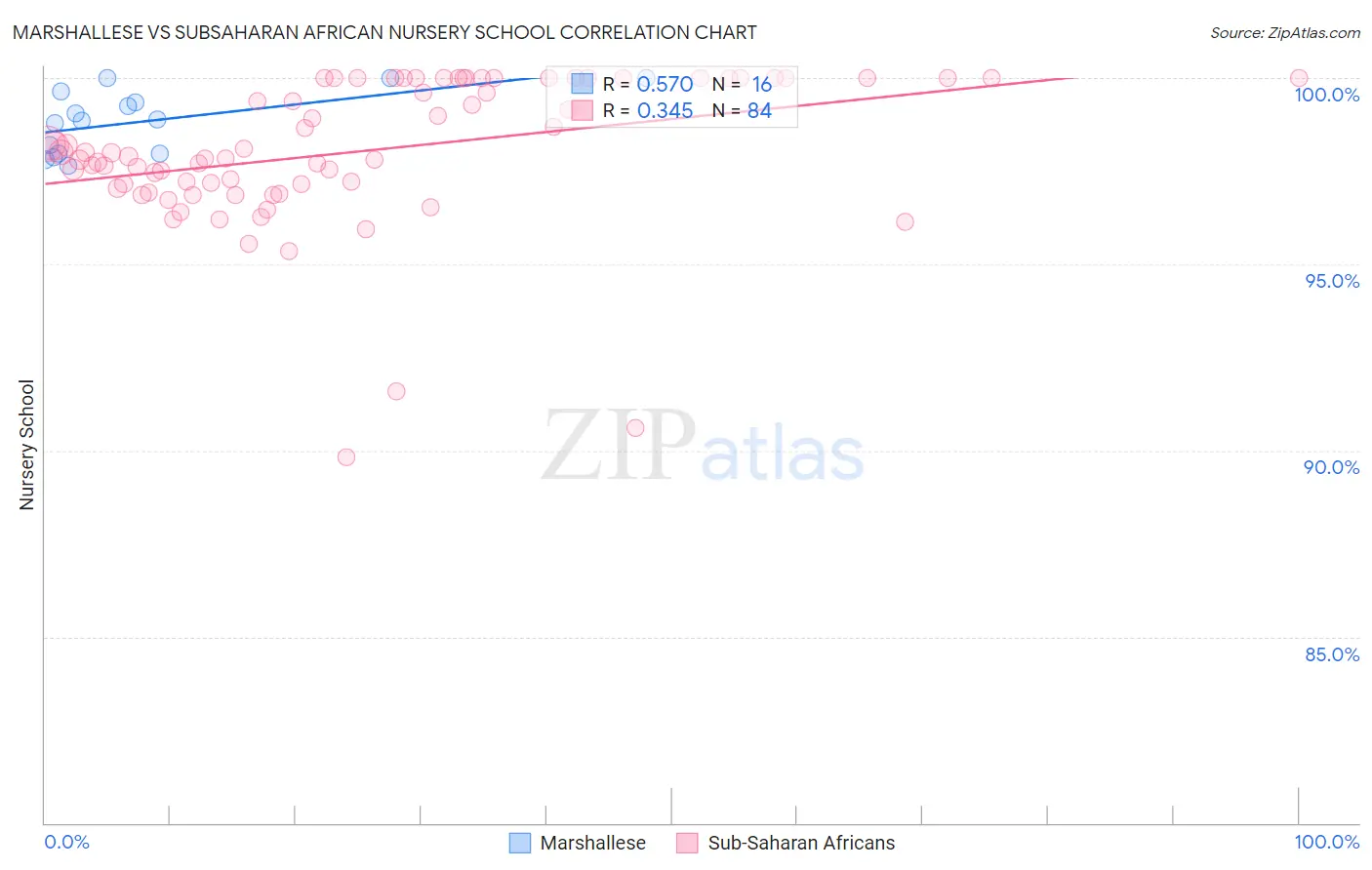 Marshallese vs Subsaharan African Nursery School Correlation Chart