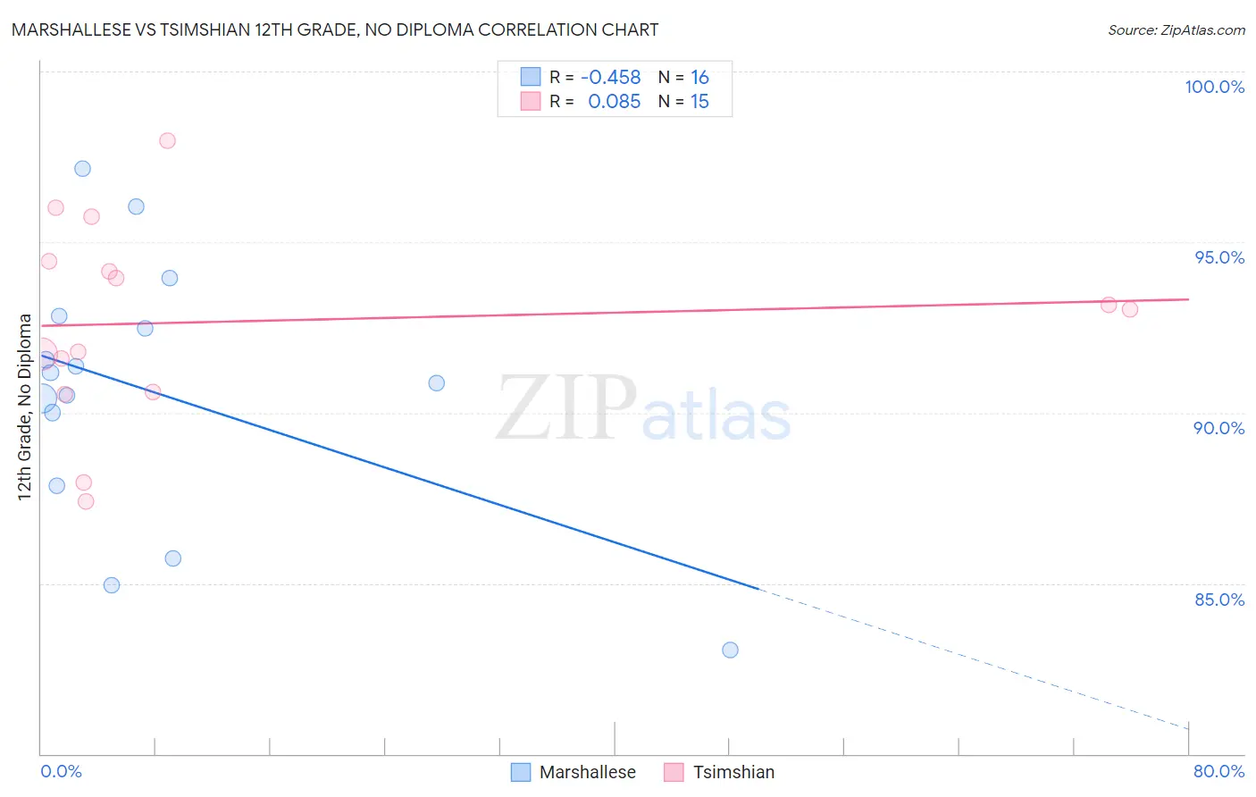 Marshallese vs Tsimshian 12th Grade, No Diploma Correlation Chart