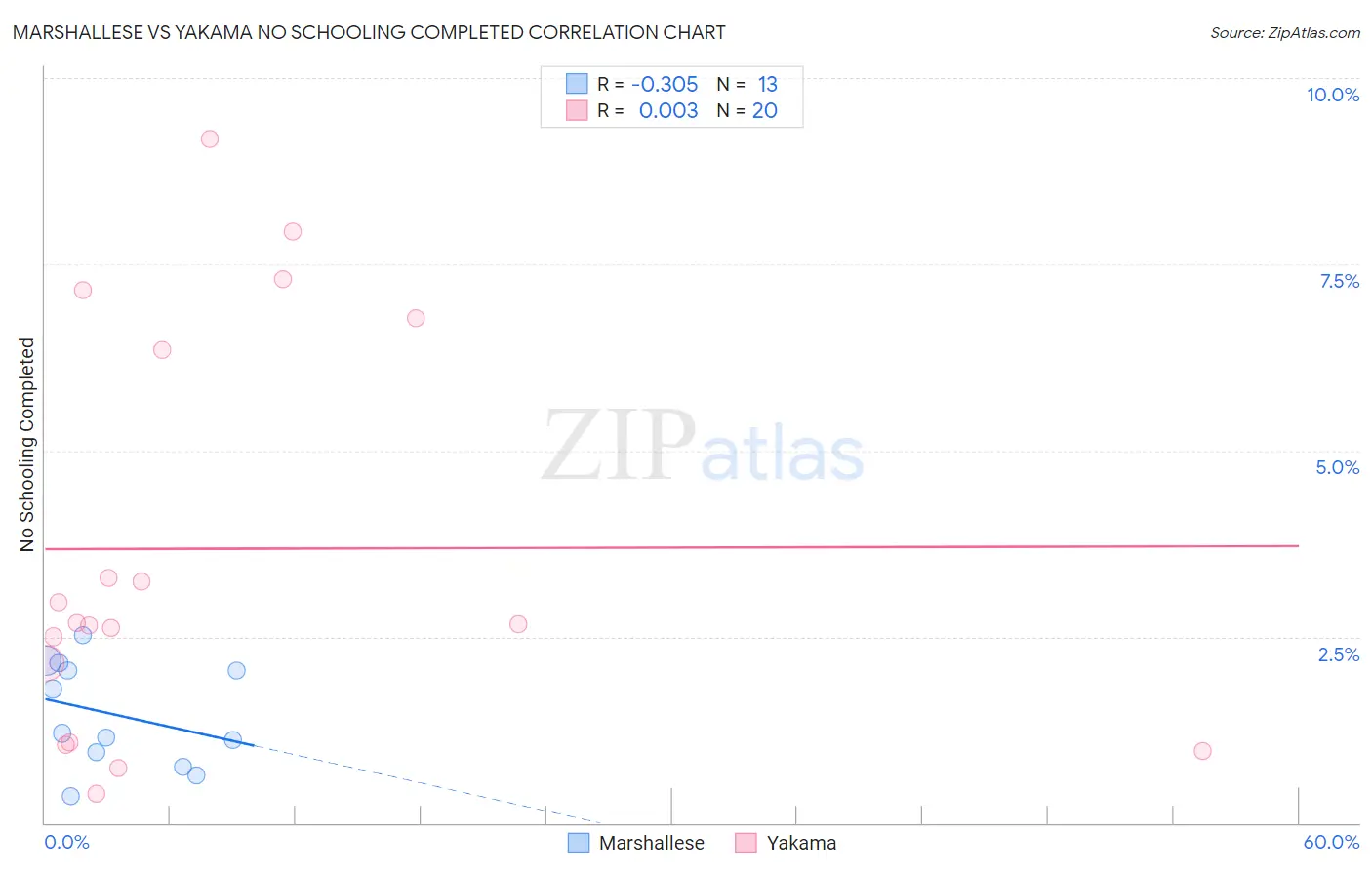 Marshallese vs Yakama No Schooling Completed Correlation Chart