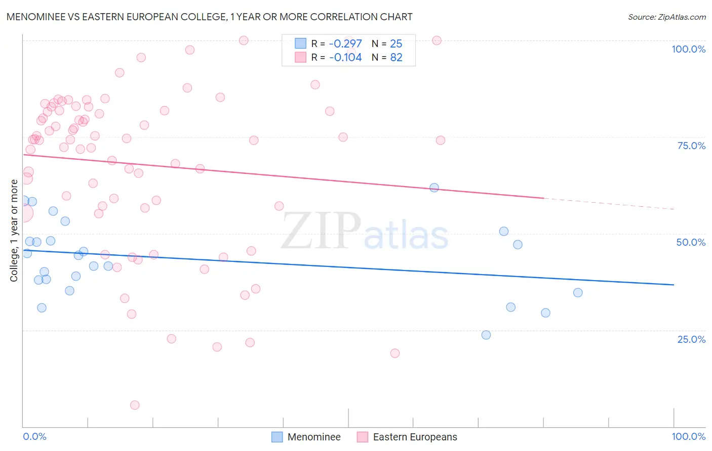 Menominee vs Eastern European College, 1 year or more Correlation Chart