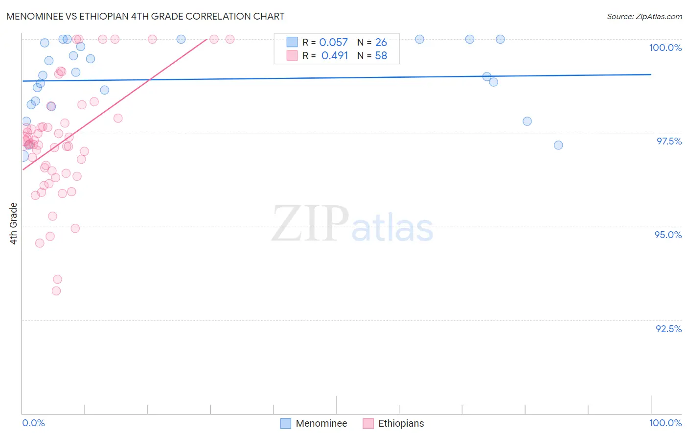 Menominee vs Ethiopian 4th Grade Correlation Chart