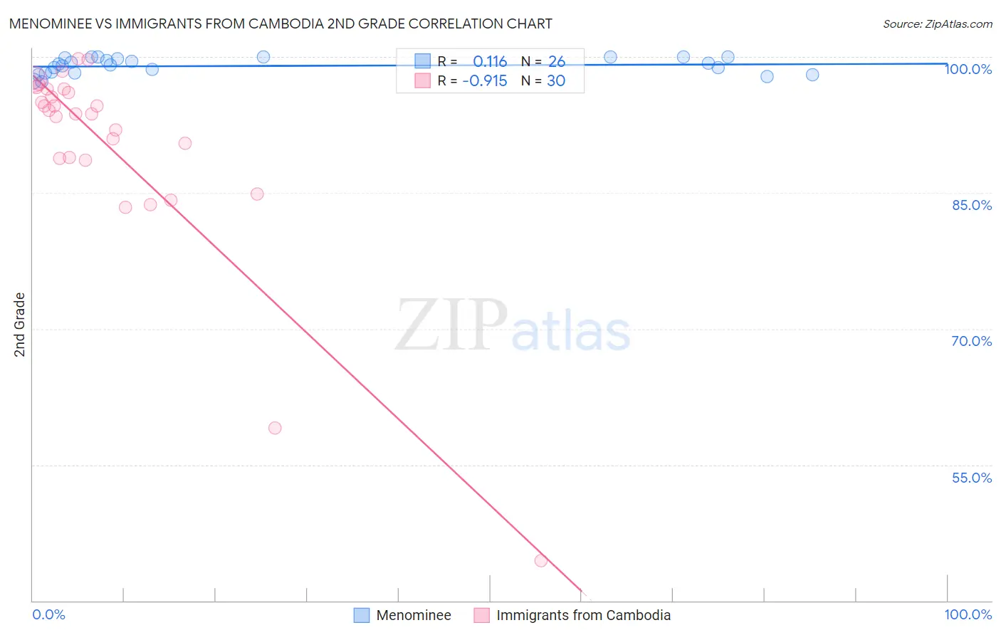 Menominee vs Immigrants from Cambodia 2nd Grade Correlation Chart