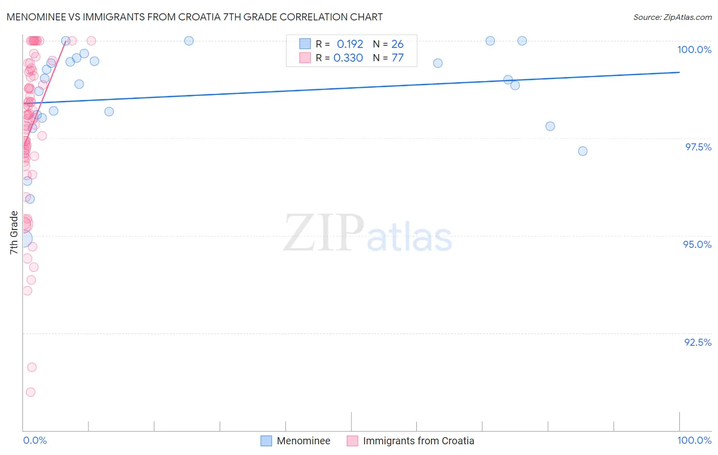 Menominee vs Immigrants from Croatia 7th Grade Correlation Chart