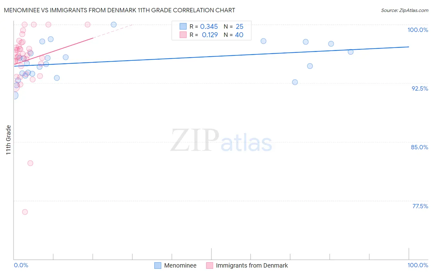 Menominee vs Immigrants from Denmark 11th Grade Correlation Chart
