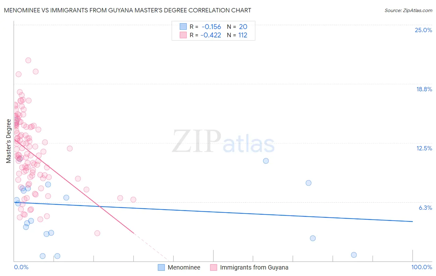 Menominee vs Immigrants from Guyana Master's Degree Correlation Chart