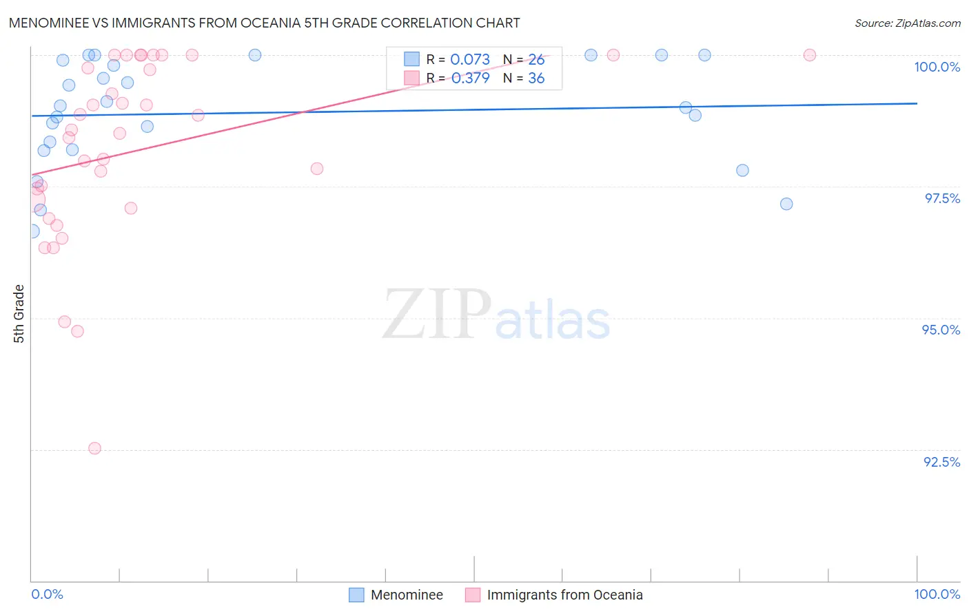 Menominee vs Immigrants from Oceania 5th Grade Correlation Chart