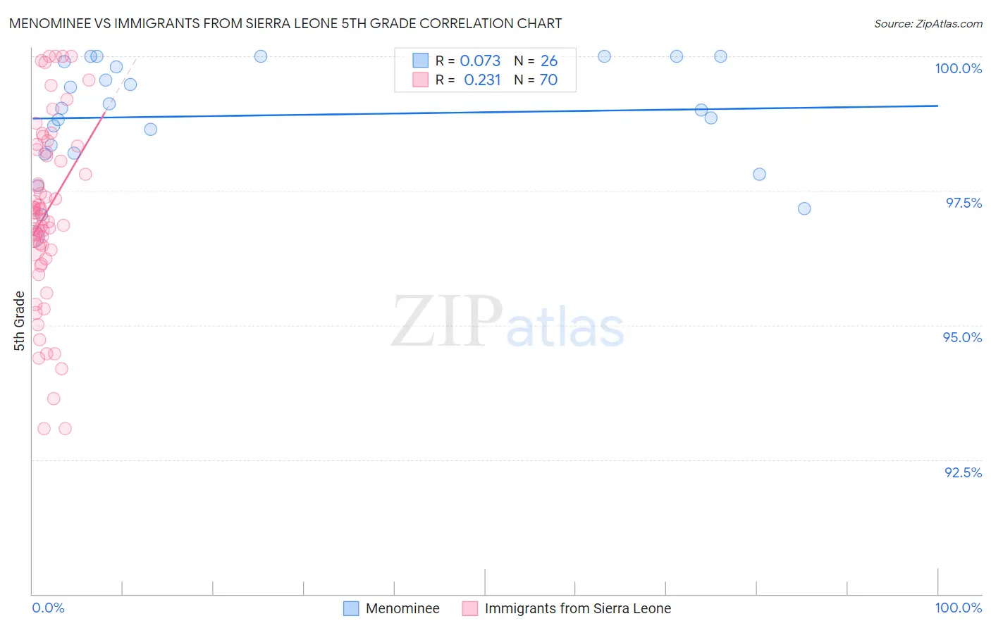 Menominee vs Immigrants from Sierra Leone 5th Grade Correlation Chart