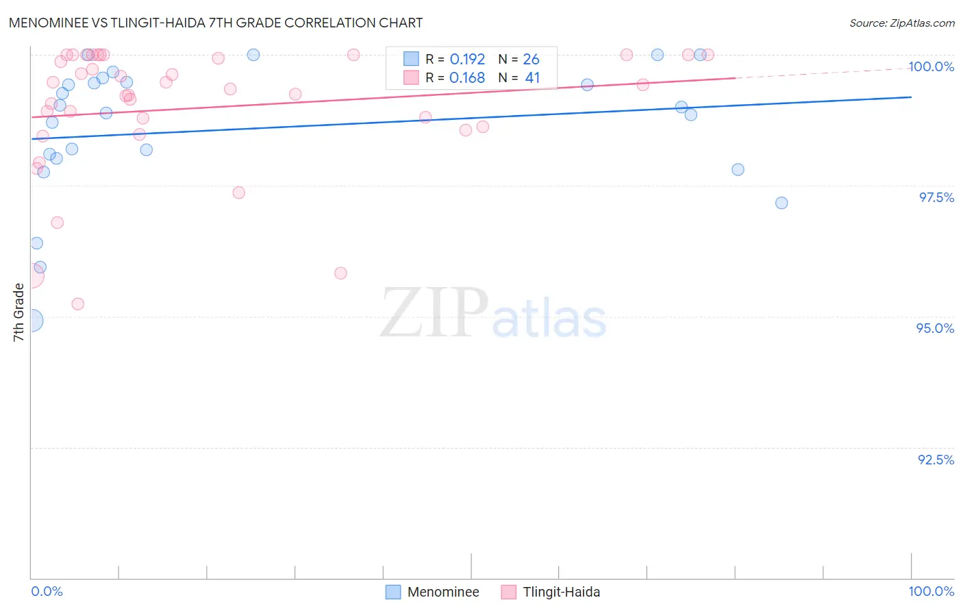 Menominee vs Tlingit-Haida 7th Grade Correlation Chart