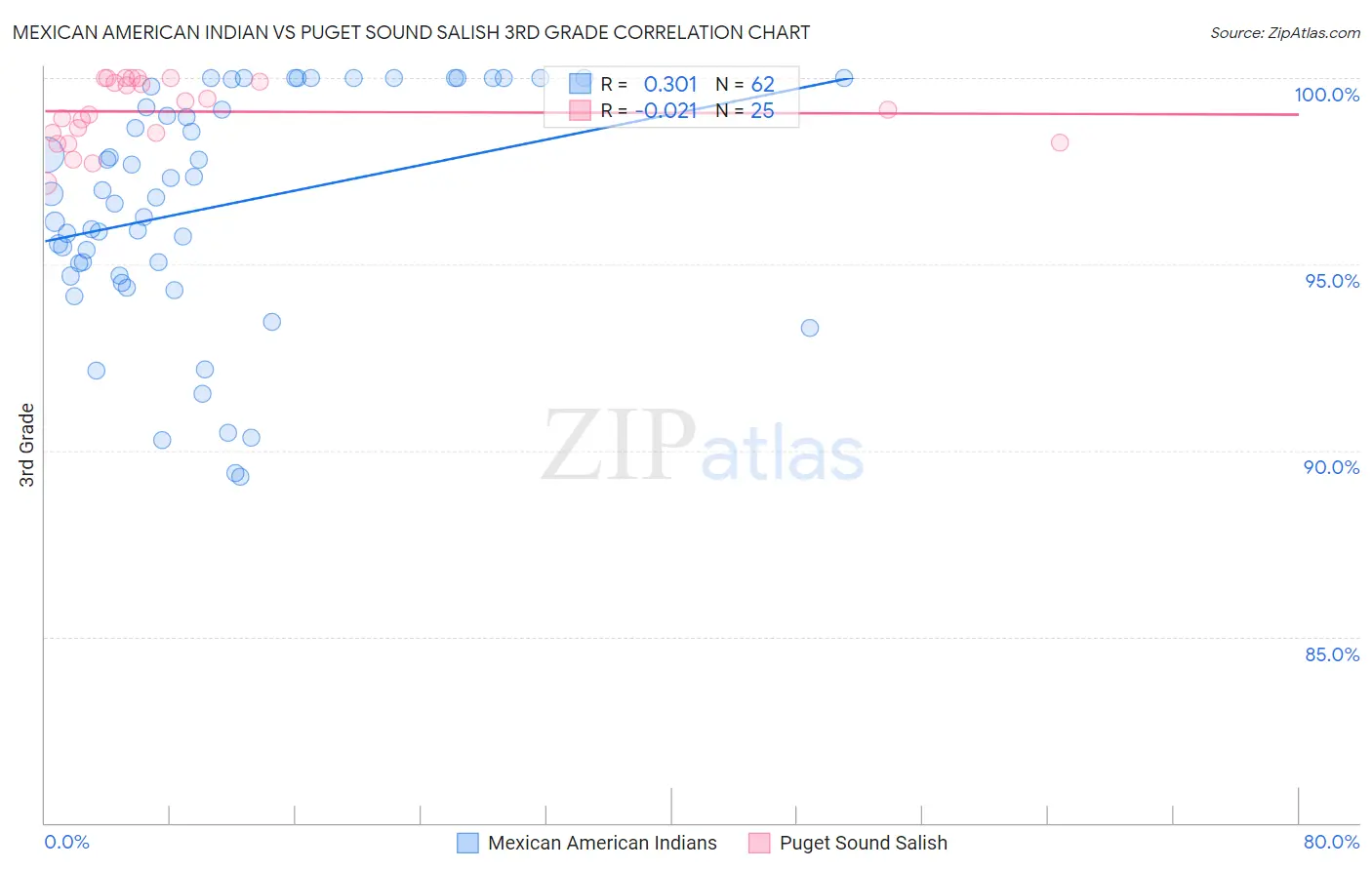 Mexican American Indian vs Puget Sound Salish 3rd Grade Correlation Chart