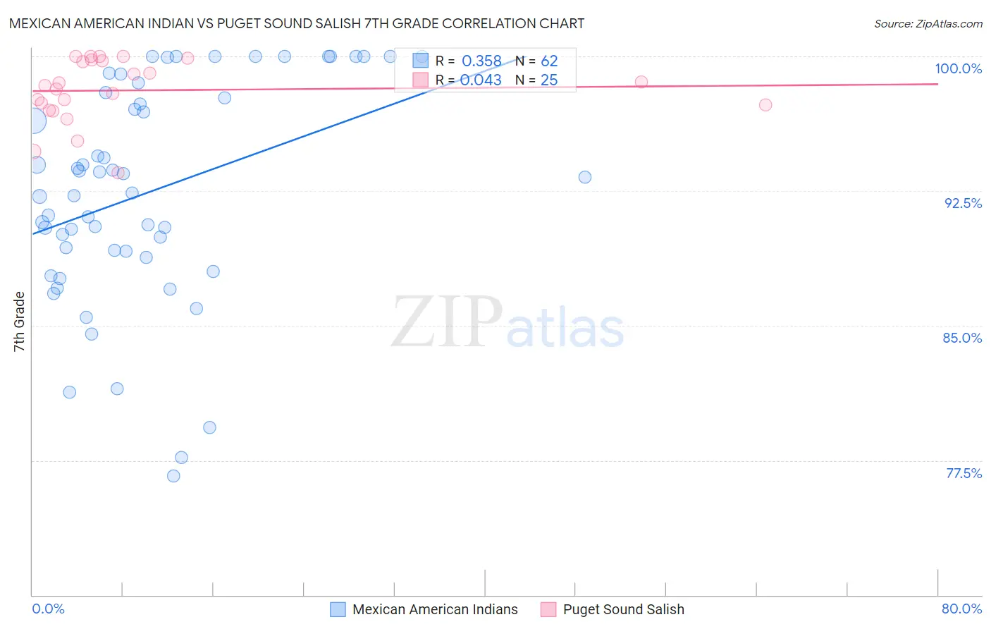 Mexican American Indian vs Puget Sound Salish 7th Grade Correlation Chart