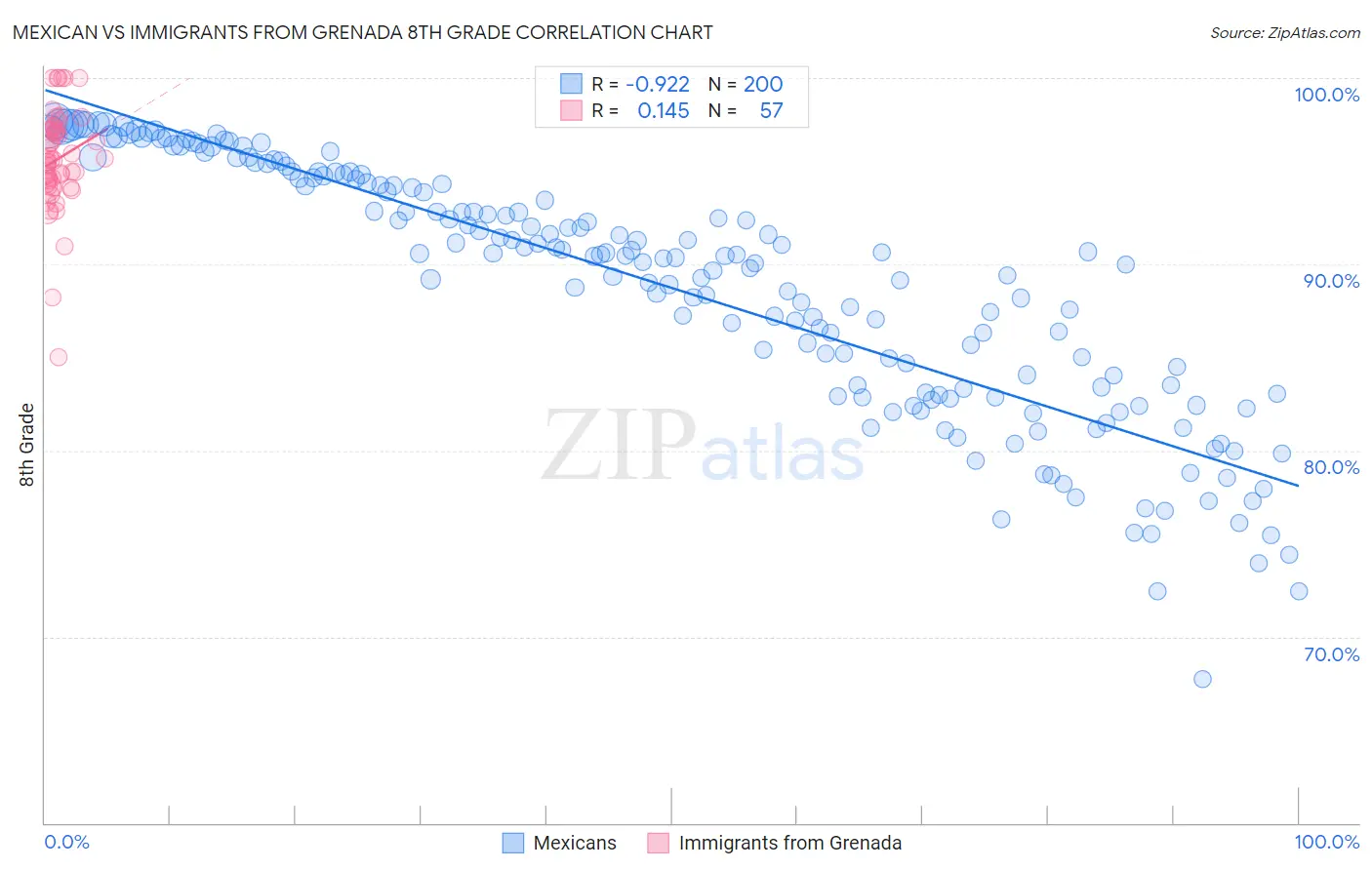 Mexican vs Immigrants from Grenada 8th Grade Correlation Chart