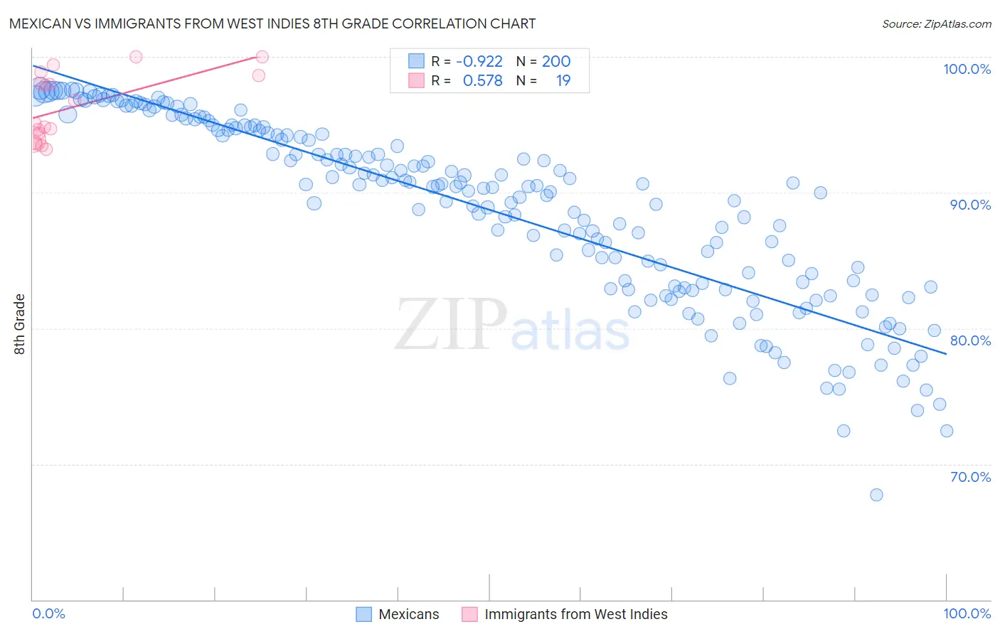 Mexican vs Immigrants from West Indies 8th Grade Correlation Chart