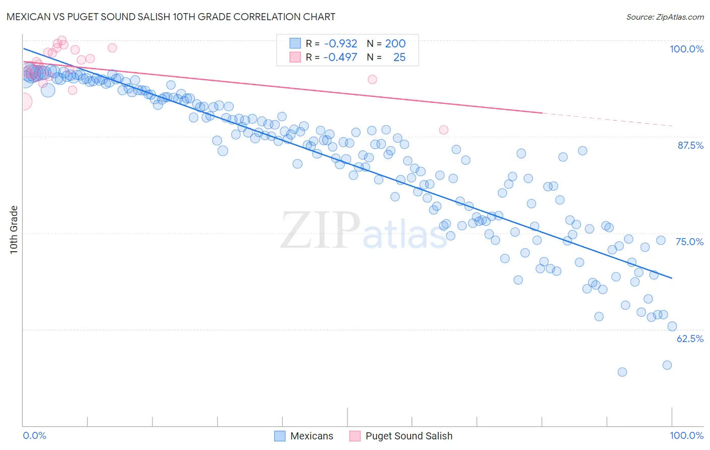 Mexican vs Puget Sound Salish 10th Grade Correlation Chart