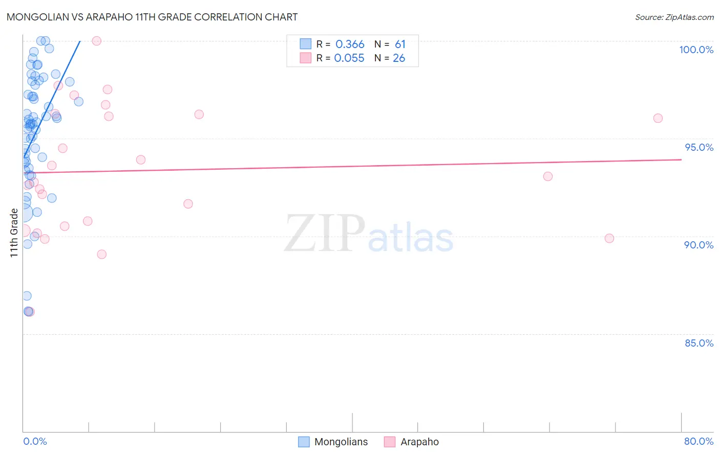 Mongolian vs Arapaho 11th Grade Correlation Chart