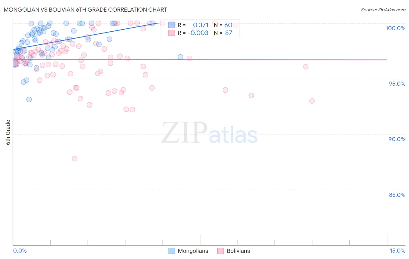 Mongolian vs Bolivian 6th Grade Correlation Chart