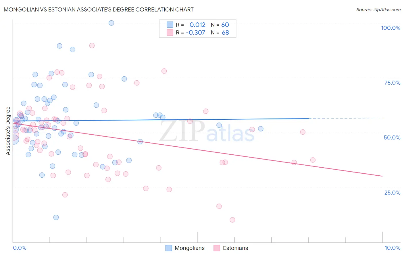 Mongolian vs Estonian Associate's Degree Correlation Chart