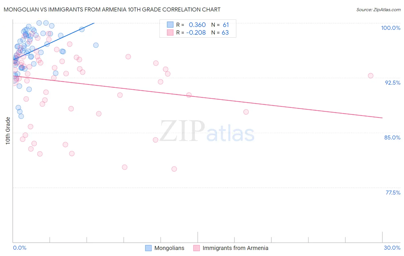 Mongolian vs Immigrants from Armenia 10th Grade Correlation Chart