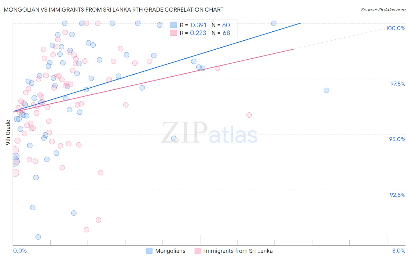 Mongolian vs Immigrants from Sri Lanka 9th Grade Correlation Chart