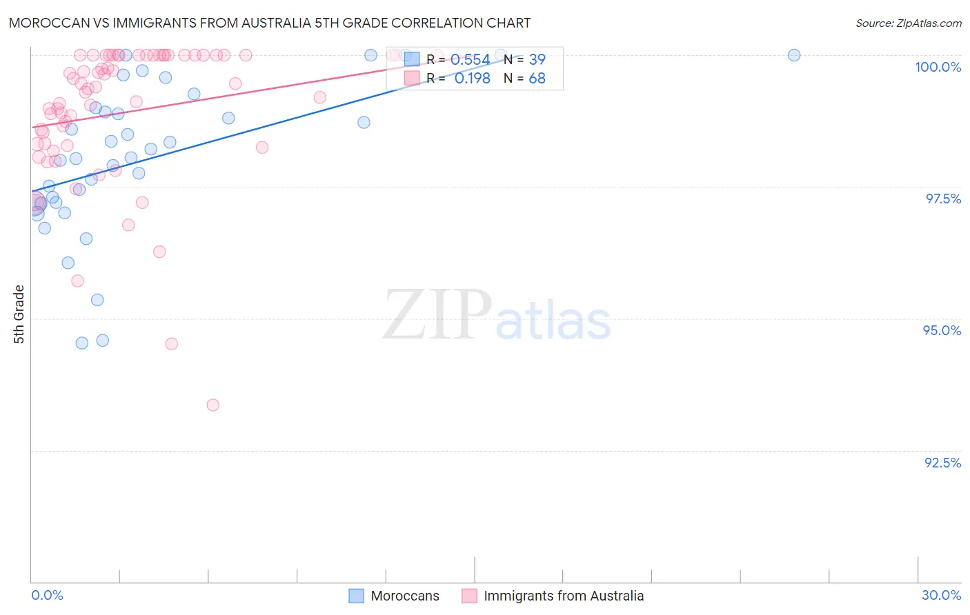 Moroccan vs Immigrants from Australia 5th Grade Correlation Chart