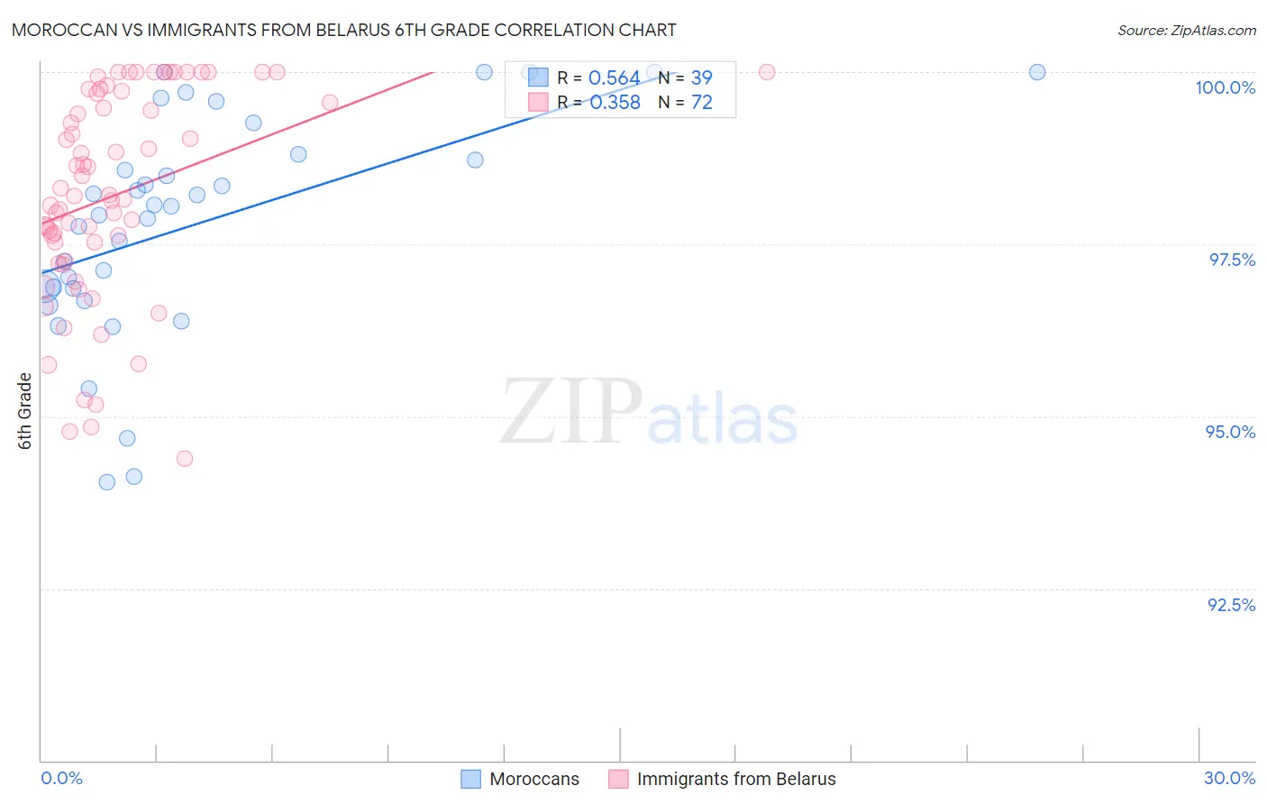 Moroccan vs Immigrants from Belarus 6th Grade Correlation Chart