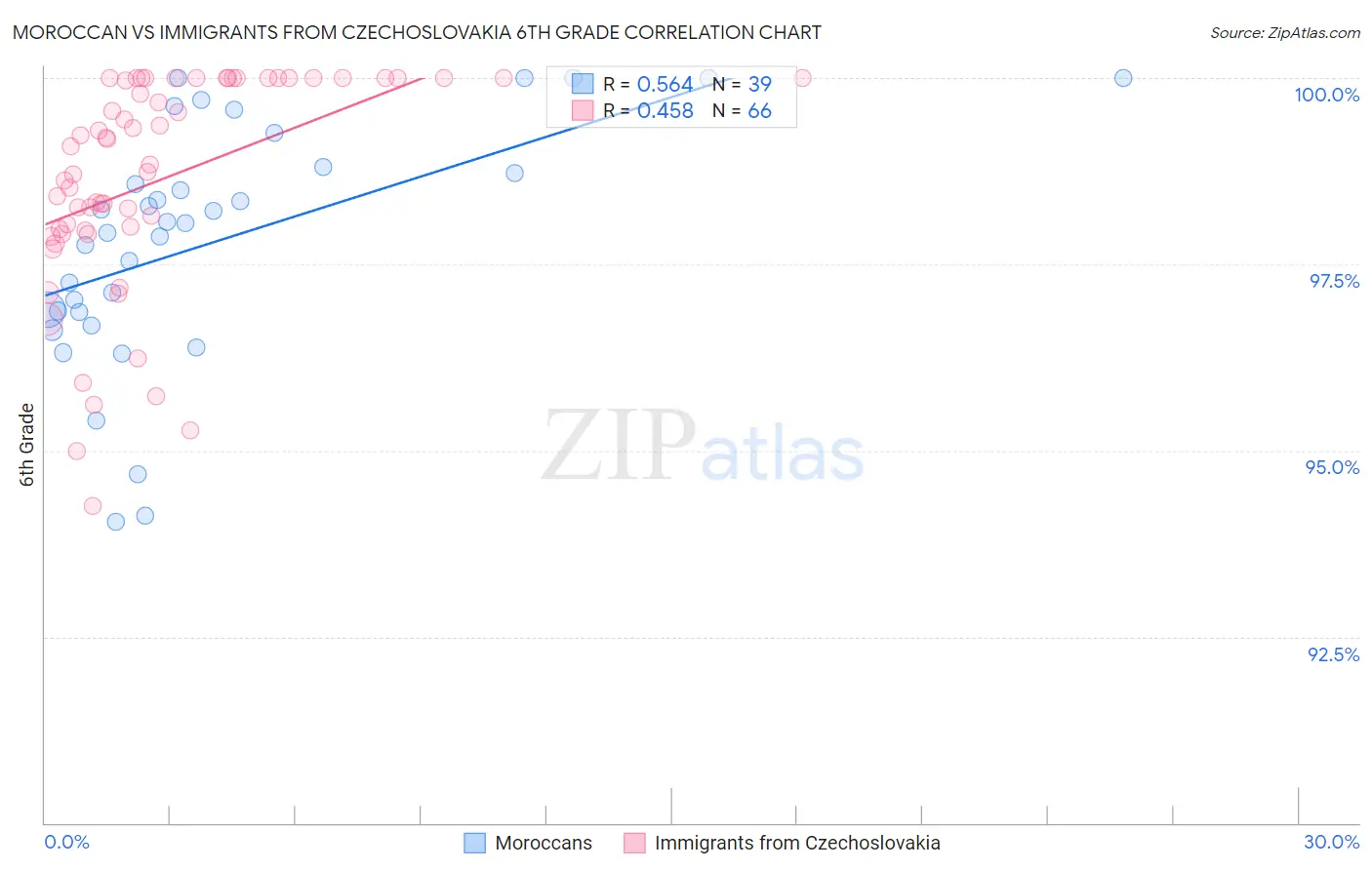 Moroccan vs Immigrants from Czechoslovakia 6th Grade Correlation Chart