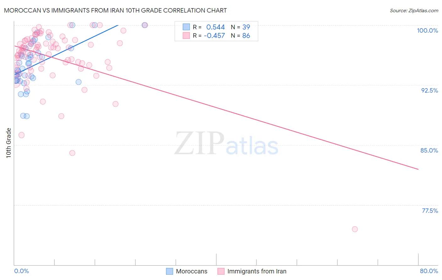 Moroccan vs Immigrants from Iran 10th Grade Correlation Chart