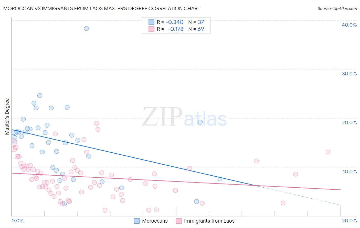 Moroccan vs Immigrants from Laos Master's Degree Correlation Chart