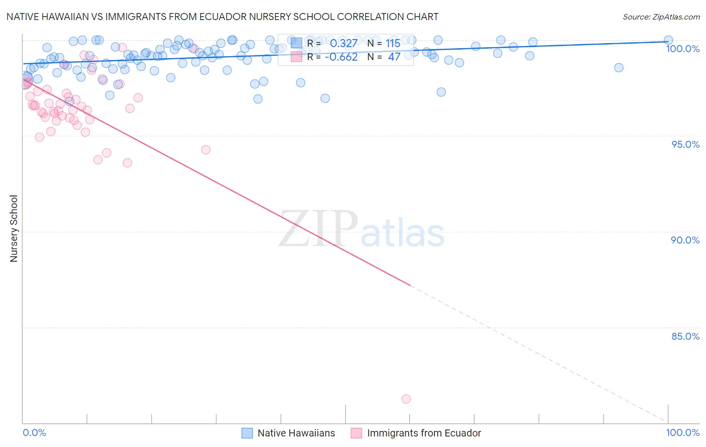 Native Hawaiian vs Immigrants from Ecuador Nursery School Correlation Chart
