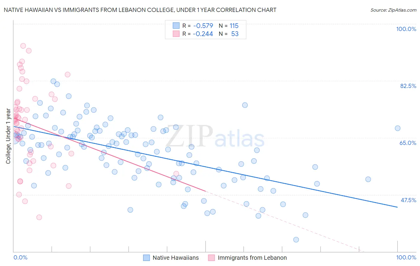 Native Hawaiian vs Immigrants from Lebanon College, Under 1 year Correlation Chart